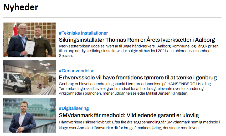 Forestil dig det her et nyhedsfeed som viser nyheder indenfor håndværkerbranchen. Eksempelvis et firma som udgiver en ny teknologi eller firmaer som gerne ville høres eller ses. Hvor hurtigt de vokser eller events.